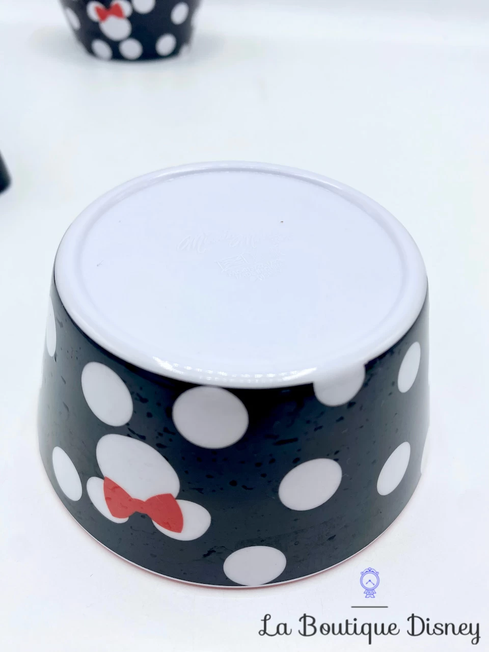 Ensemble de 3 pièces en melamine sur le thème Minnie Mouse. Il y a deux mini bols noirs à pois blancs avec des têtes de Minnie et l’intérieur rouge. Il y a également un « plateau » (appelé comme cela sur le site de vente officiel) qui est en réalité plutôt un petit plat en longueur. Il est noir avec l’intérieur blanc et l’inscription « Minnie ». Cet ensemble sera idéal pour votre apéritif entre amis lors des soirées d’été !