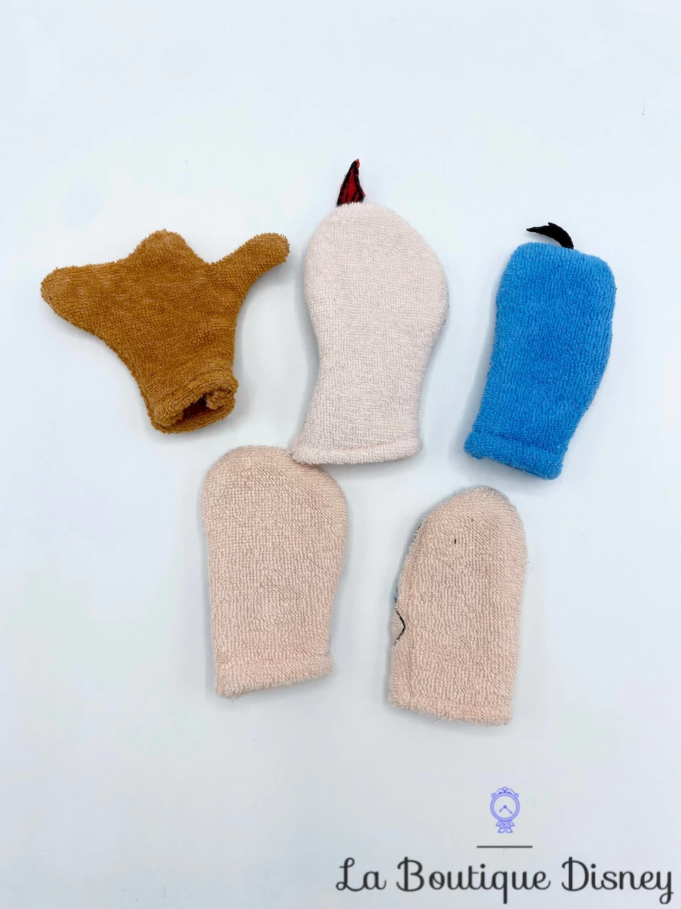 Ensemble de 5 petites marionnettes à enfiler sur les doigts. Elles représentent Aladdin, la princesse Jasmine d’Agrabah, le Génie ainsi que sa lampe magique et enfin Jafar le Vizir. Petit ensemble très mignon pour jouer des scènes de votre dessin animé Disney préféré !