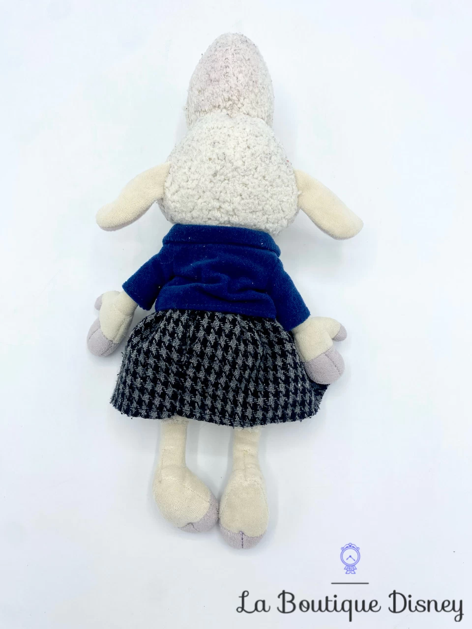 Peluche en fibres de polyester de Dawn Bellwether, l’assistante du Maire Lionheart dans la ville de Zootopie. C’est un petit mouton qui semble très gentil au premier abord ! Elle est en réalité la méchante du dessin animé et reponsable des animaux disparus redevenus sauvages. Elle porte robe grise et noire avec une petite veste bleu. Dawn Bellwether a un joli visage brodé avec des lunettes marron.