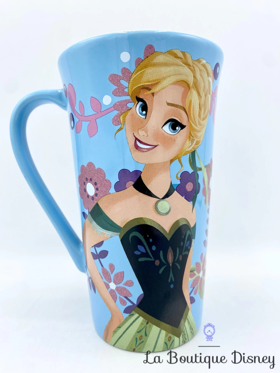 Tasse Anna La Reine Des Neiges Disney Store Mug Bleu Fleurs Haut