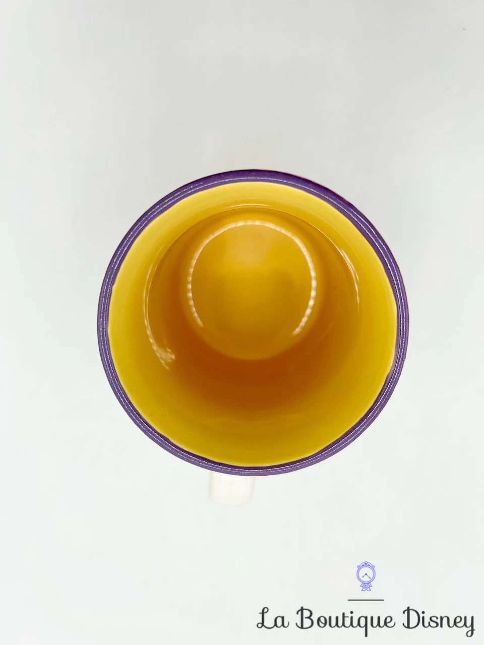Mug en cĂ©ramique blanc reprĂ©sentant la princesse indienne Pocahontas dans un cadre rouge. Son ami le raton laveur gourmand Meeko est quant Ă lui reprĂ©sentĂ© dans un cadre bleu. Tout autour du mug se trouvent des motifs faisant rĂ©fĂ©rence au dessin animĂ©. Inscription « Disney’s Pocahontas » en rouge. Anse blanche. IntĂ©rieur jaune.